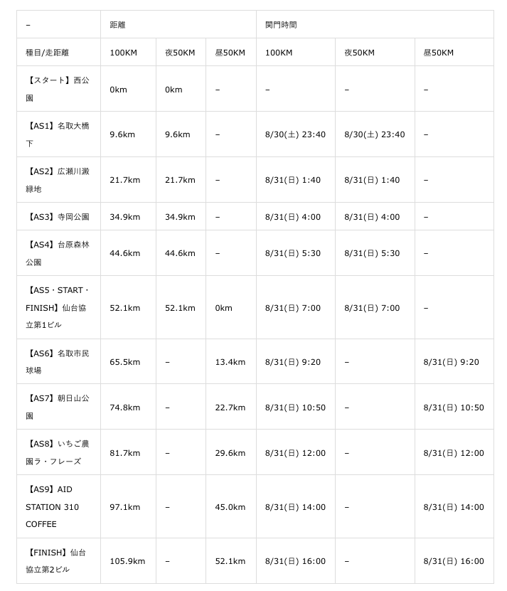 【第2回仙台ウルトラマラソン】コース確定及び関門時間について